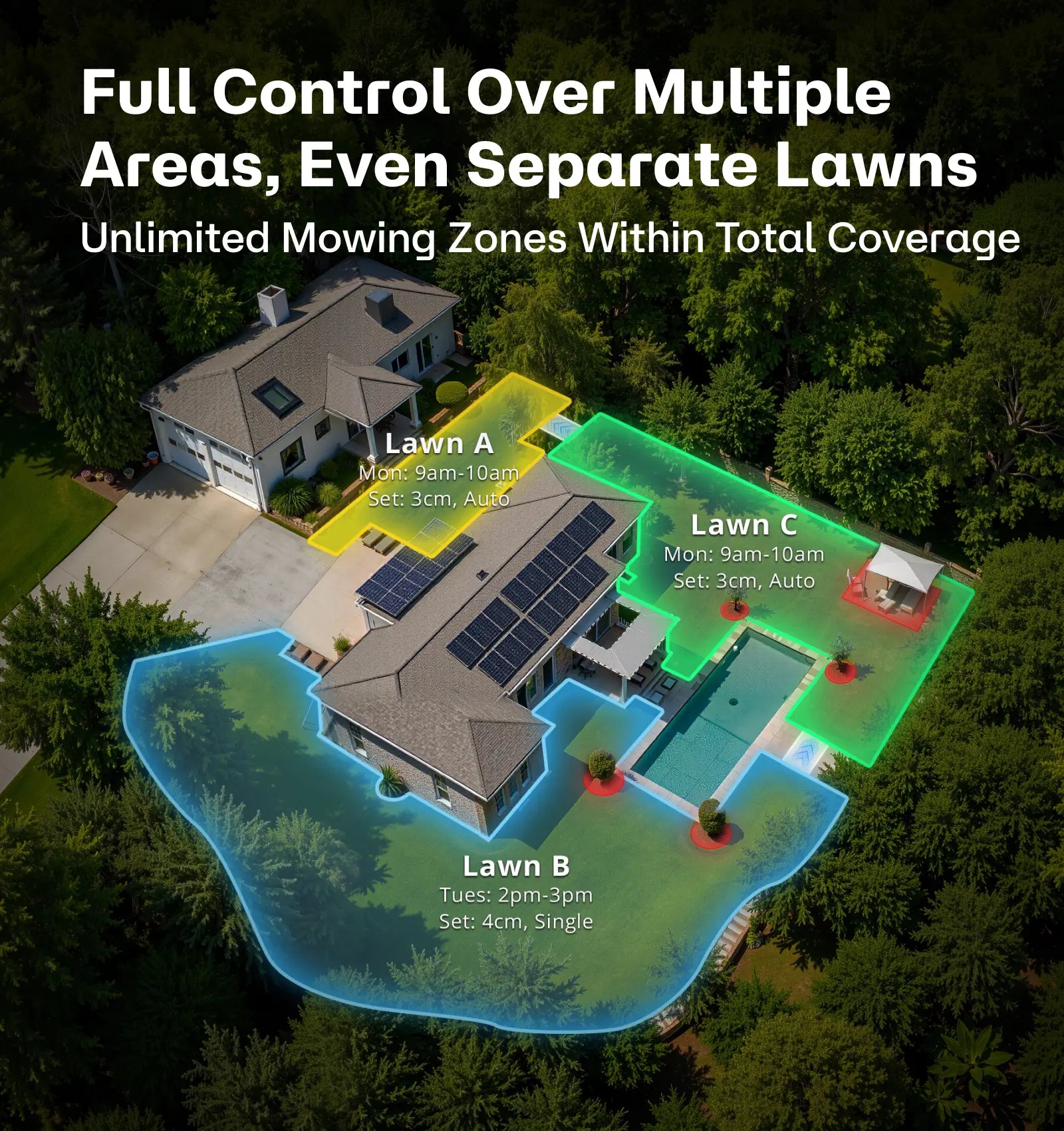 Make adjustments to your garden layout with the T1200Pro's map editing feature. Whether you're adding a flower bed or changing mowing zones, simply control the mower to the desired area and make real-time changes. There's no need to recreate the entire map anymore.